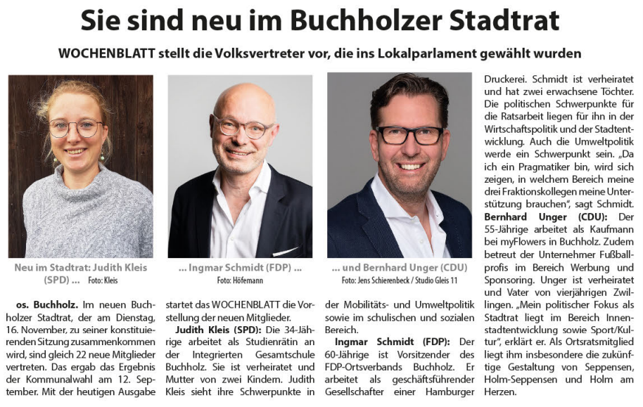 Sie sind neu im Buchholzer Stadtrat