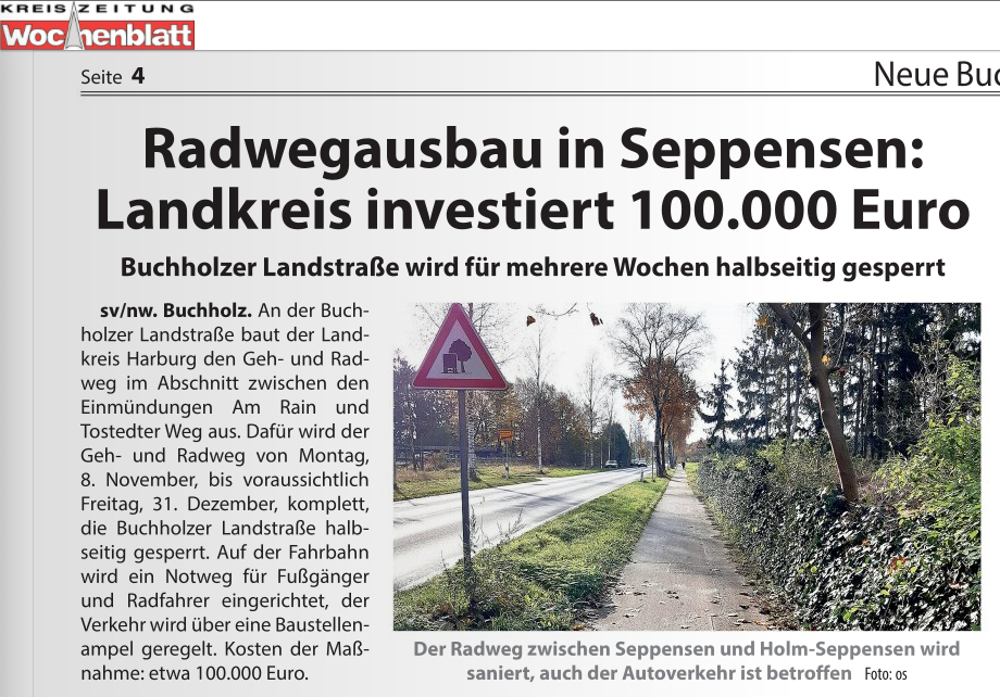 Radwegausbau in Seppensen: Landkreis investiert 100.000 Euro