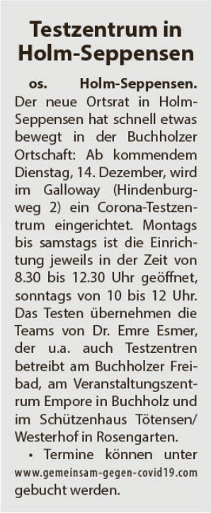 Testzentrum in Holm-Seppensen