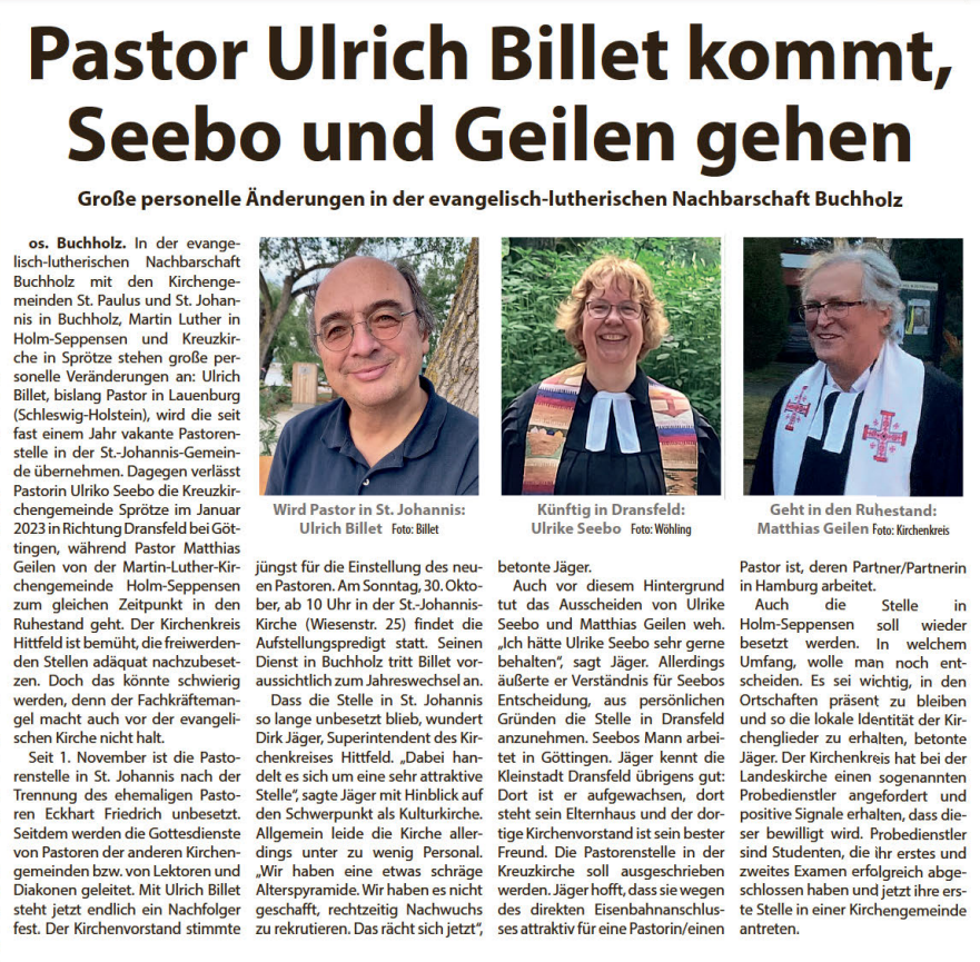 Pastor Ulrich Billet kommt, Ulriko Seebo und Matthias Geilen gehen